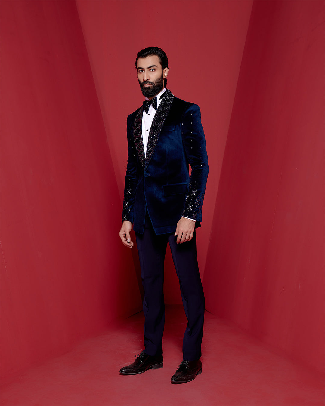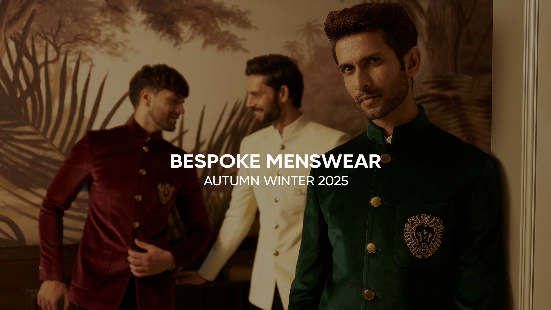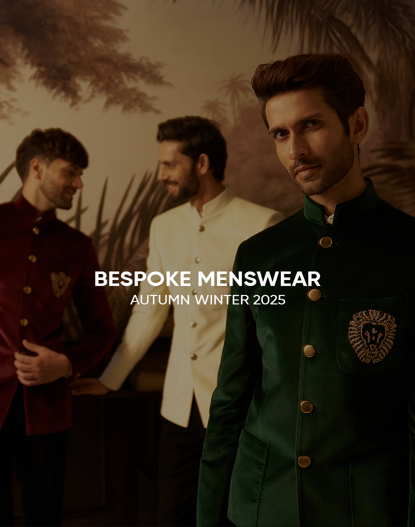 Each bespoke garment is designed on-site in our studio and fully executed in our own bespoke workshop by a master tailor using the finest old-world craftsmanship, specialising in bespoke suits in India.